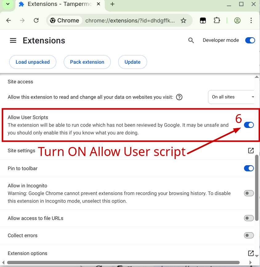 Step 3: Allow User Scripts (Chrome, Edge, Opera, Brave)